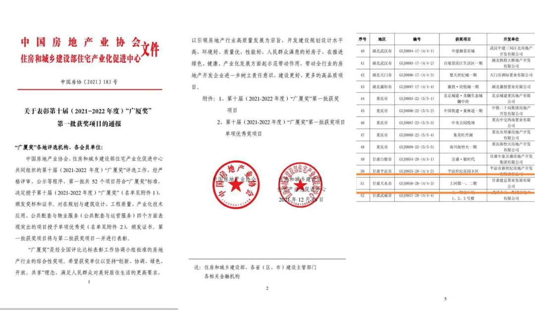 近日,由甘肅建投置業(yè)公司開(kāi)發(fā)建設(shè)的天水上河郡一、二期住宅項(xiàng)目,榮獲第十屆(2021-2022年度)第一批中國(guó)房地產(chǎn)“廣廈獎(jiǎng)”。該項(xiàng)目成為置業(yè)公司在天水開(kāi)發(fā)建設(shè)的項(xiàng)目中第二個(gè)獲得該殊榮的項(xiàng)目。也是2022最驚喜的新年禮物。