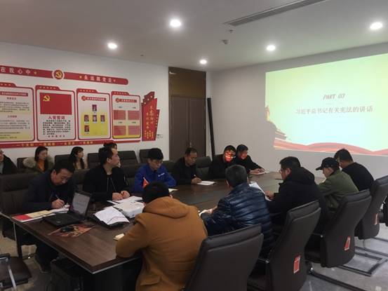 12月7日,成都公司黨支部組織各部室員工及施工單位、監(jiān)理單位相關人員開展了“憲法進項目”主題黨日活動。此次主題黨日活動由成都公司黨支部書記馬臻奇主持,活動主要學習了三項內容,一是學習置業(yè)公司關于做好2019年國家憲法日及憲法宣傳周有關工作的通知;二是學習《中華人民共和國憲法修正案》;三是學習習近平總書記有關憲法、全面依法治國的講話精神。